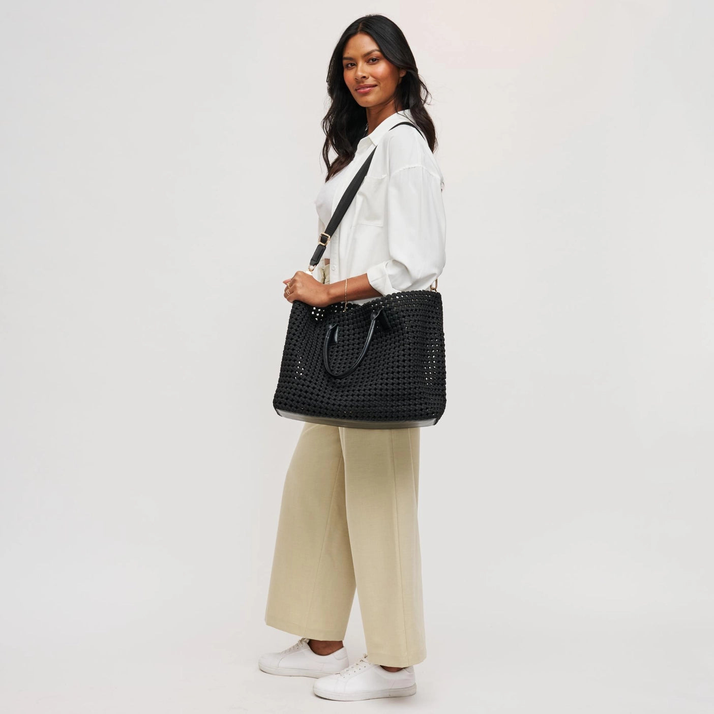 A chic essential crafted from neoprene. Revel in the relaxed elegance of the open closure and the intricate braided design. The adjustable/detachable shoulder strap offers personalized wear, and the unlined interior adds a touch of easy sophistication. Unveil practicality with the removable drawstring pouch, making this Hobo the perfect companion for your everyday adventures. The knot design featured on this bag is a series of interlaced loops that create a textured pattern. The hand woven knotting technique, where the material is systematically looped and knotted to produce a consistent and repetitive pattern that is both decorative and functional. *Item Type: Hobo *Material: Neoprene *Closure: Open *Exterior Details: Braided Design, Adjustable/Detachable Shoulder Strap *Interior Details: Unlined, Removable Drawstring Pouch