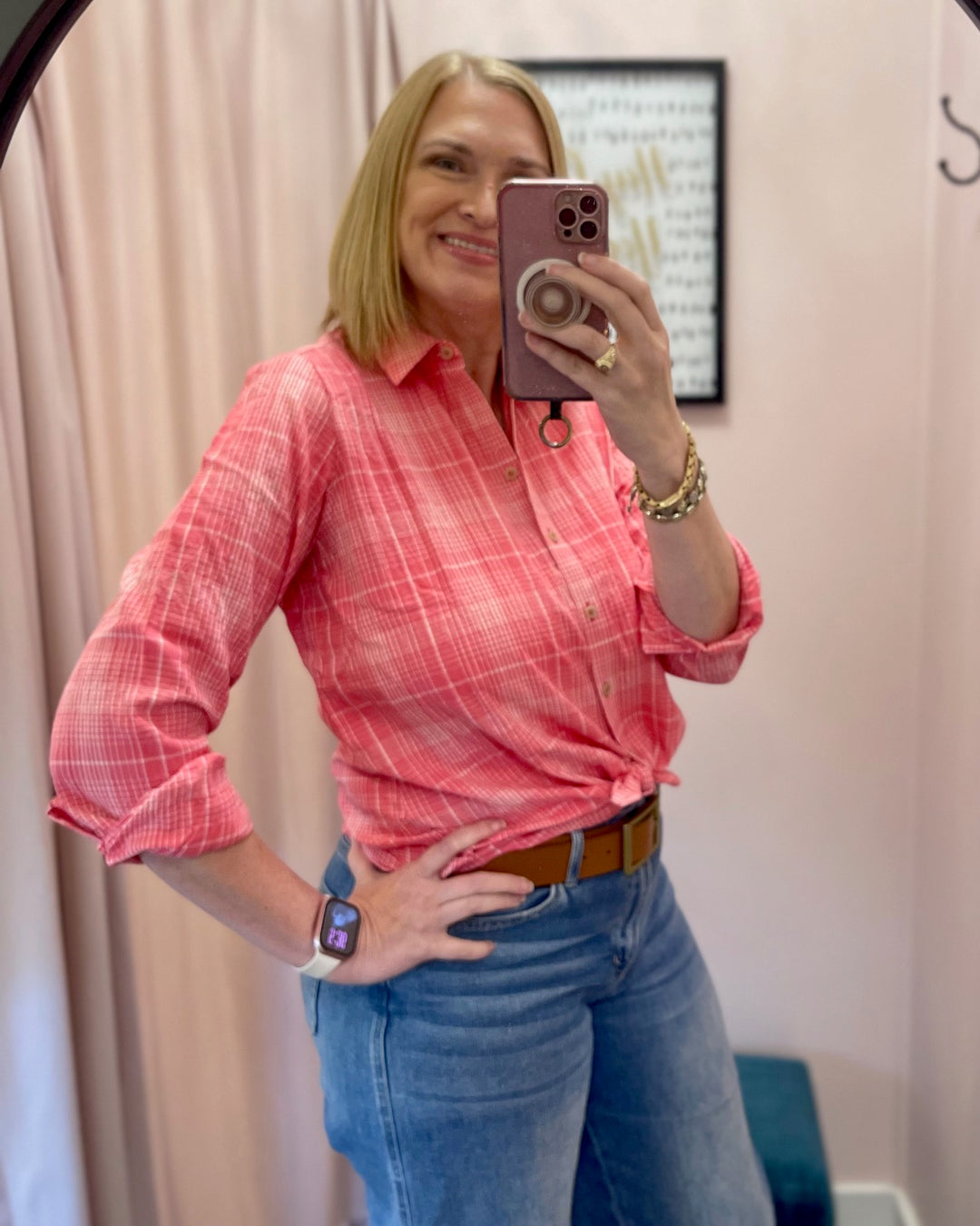 Rhea Plaid Perfection Long Sleeve Shirt in Pure Pink
