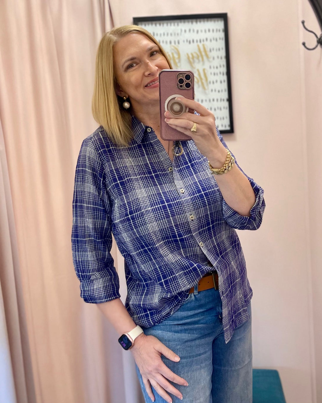 Rhea Plaid Perfection Long Sleeve Shirt in Indigo