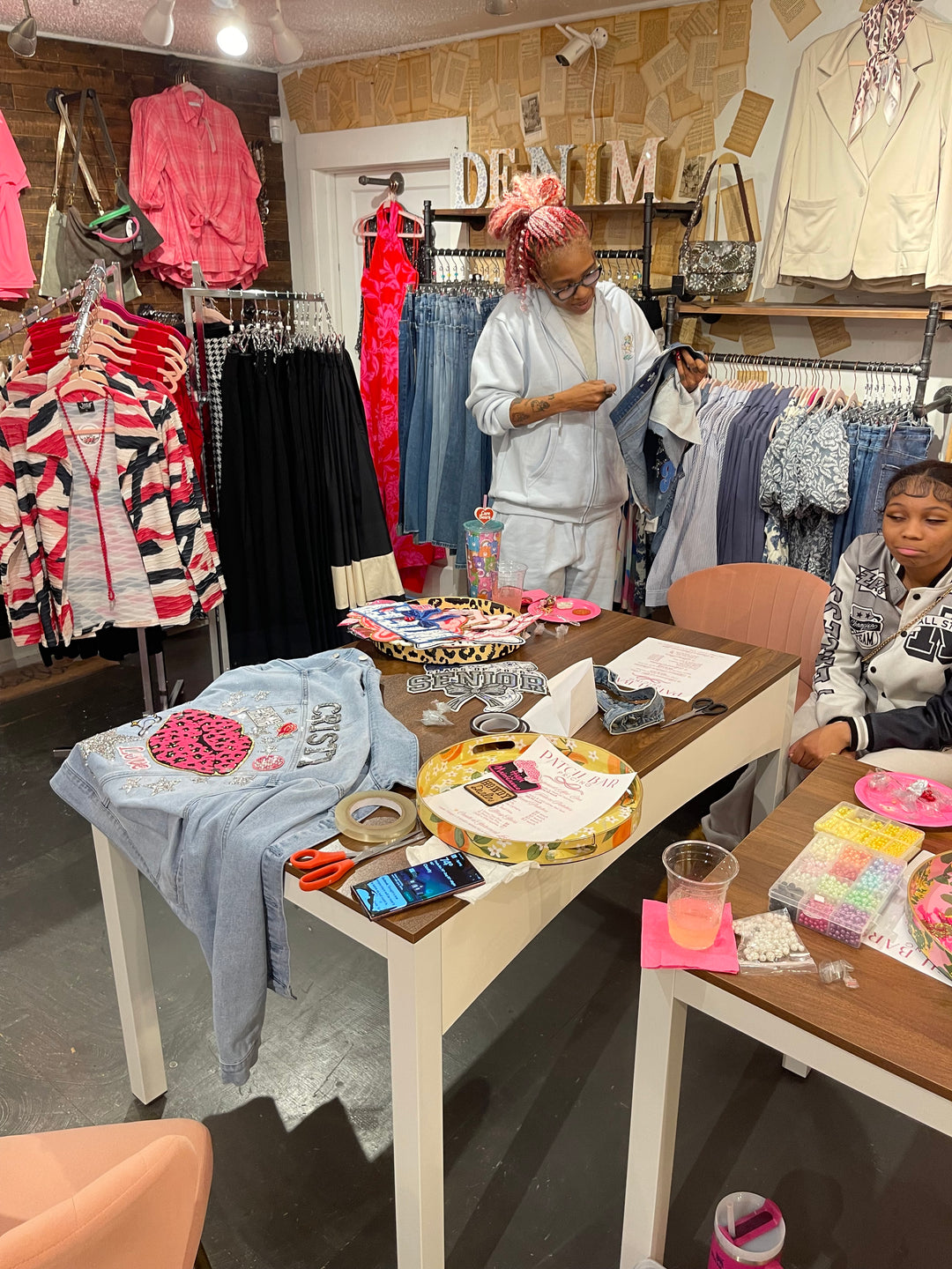 Reserve the studio for your own girls’ night, birthday, or celebration and enjoy a private Denim Remix experience.